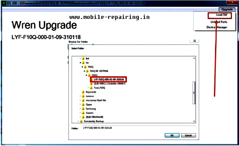 Step 5 : अपग्रेड पर क्लिक करें और लोड SW विकल्प चुनें। और सॉफ़्टवेयर फ़ाइल स्थान ब्राउज़ करें